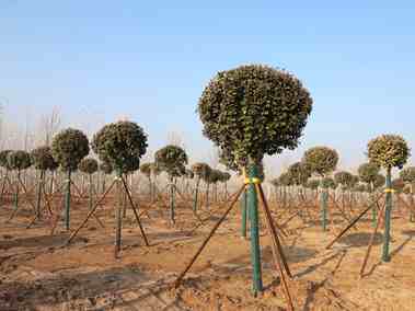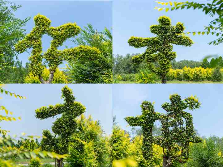 在博華有這樣一支團隊,他們基于金葉榆、紫葉李、小葉女貞、樸樹等品種,在遵循樹木生長特性和自然分枝規(guī)律的前提下,制訂出“因種而異、因樹造型”的方案,對苗木進行科學、特定的造型設計、栽培管理、牽引搭架、修剪整型等方式處理,創(chuàng)造出來了一個個美好的藝術景觀形象,不僅符合人們對美的追求,還使樹木文化得到了延伸。